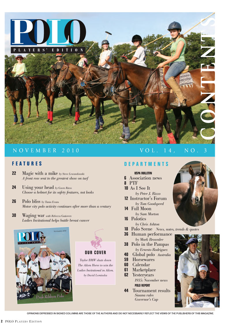 Polo Players Edition Online Magazine, a publication dedicated to the sport of polo and the lifestyle of polo players, is copyright protected. NOTHING from this site may be copied without permission of the publisher.